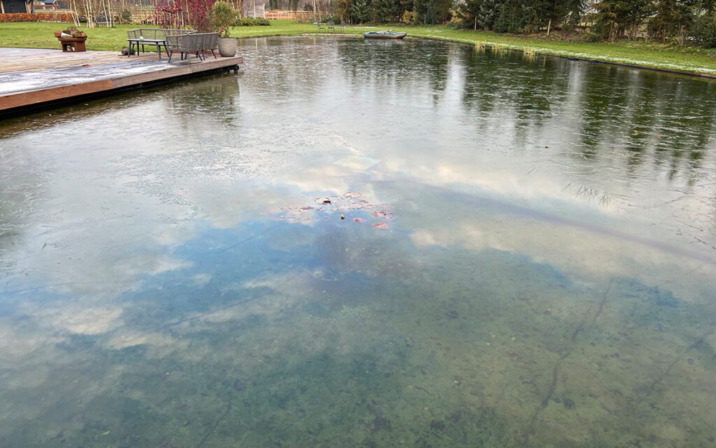 Ook de omgeving telt mee. Blad, bloesem en stof verdwijnen niet vanzelf. Alles wat in de vijver terechtkomt, wordt onderdeel van het systeem en moet biologisch of technisch worden verwerkt. Een vijver onder bomen vraagt daardoor een andere inrichting dan een open vijver in de zon: denk aan opvang van drijvend vuil, meer aandacht voor slibopbouw en een ontwerp dat schoonmaakbaarheid ondersteunt. Wie dit vooraf accepteert, bouwt een vijver die binnen die omstandigheden stabiel blijft.
